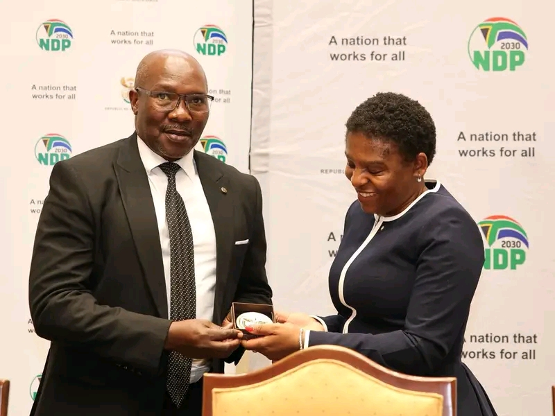 Lieutenant-General Dumisani Khumalo, the Divisional Commissioner of Crime Intelligence in the South African Police Service (SAPS), has been honoured with a special commemorative insignia coin by Minister in the Presidency, Khumbudzo Ntshavheni.